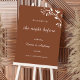 Welcome your guests in style with this Rustic Minimalist Rehearsal Dinner Welcome Sign, designed to add a touch of warmth and elegance to your special evening. Featuring a clean, modern layout with subtle rustic elements, this sign is perfect for setting the tone for an intimate gathering. The neutral color palette and timeless typography make it a versatile choice for various wedding themes, from rustic chic to modern farmhouse. Personalize it with your names and event details to create a unique piece that enhances your celebration. Printed on high-quality materials, this sign is both stylish and durable.
