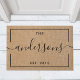 Custom-designed doormat featuring rustic modern black and natural design with personalized family name in modern hand calligraphy.