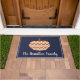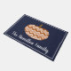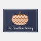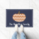 Get ready for fall with this trendy and cute chevrons patterned pumpkin doormat with your family's name in script. This rustic and modern dark navy accented chevrons pumpkin doormat is a great contrast to the muted colors of fall.