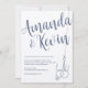 Rustic Modern Fishing Hook Wedding Ring Kraft Blue Invitation
