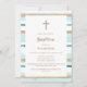 Rustic Modern Gold Stripe Cross Boy Baptism Invitation