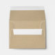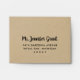 Custom wedding response / note card envelopes feature a black modern script reply address that can be personalized and a printed background with a rustic kraft brown paper textured appearance.