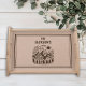 Rustic Modern Mountain Custom Serving Tray with hand drawn style mountain scene with trees and sun. Add your own custom name! Makes a great gift for the home. Modern Rustic Hand-drawn Mountain Custom Family Serving Tray
