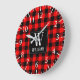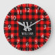 Rustic Modern Red Buffalo Plaid Checkered Monogram Large Clock