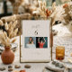 This unique table number card features two photo slots where you can add the bride and groom's photo of when they were of the age of the respective table number. It has a beautiful photo frame and customizable text. This elegant template allows to easily add the table number, names, date and personal photo. Maximum customization makes it easy to personalize for any rustic, modern, or bohemian-style wedding. This unique idea can make your wedding for fun and interesting.