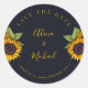 Rustic modern sunflowers wedding save date classic round sticker