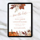 Modern rustic elegant watercolor botanical flowers, pumpkin, foliage, and dried leaves making a chic autumn wedding save the date card with custom engagement photo, a trendy handwriting calligraphy script and earthy terracotta beige color palette. ++++++++++++++++ Personalize it with your picture and QR code to your website.