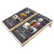Custom rustic dark wooden corn hole set with modern string light design featuring your custom names and family name as well as year established alongside minimal typography reading "Mr and Mrs" on a printed dark wooden backdrop. Please personalize with your 6 favorite photos and enjoy this fun outdoor family game. Perfect for a outdoor summer wedding, a gift for newlyweds, or a housewarming party.