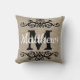 © Socialite Designs Inc. Customizable monogram and name burlap/linen look pillow. The top and bottom of the pillow has vintage flourishes.