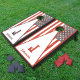 Natural Wood Cornhole Set, Red and Royal Blue bags