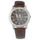Personalized Family Name, monogram, and year established Rustic Modern watch in a trendy farmhouse style design with roman numeral clock face and dark wood plank / shiplap backdrop design. Perfect gift for newlyweds, wedding or housewarming present or grandparents gift, or for a home make-over in your cabin, cottage, or country house.