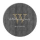 Rustic Monogram Initial Family Name Chic Cutting Board. Personalized monogram initial with the family's last name and wedding date in script lettering on a charcoal grey background. Makes a unique cute gift for newlyweds. Lovely for their new life together or for a housewarming gift. Click Personalize this template to customize it quickly and easily. Ships Worldwide Fast.