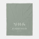 This personalized blanket features a trendy soft sage green background with a monogram surrounded by branches along with a last name and established date. With a rustic monogram and the family details, it makes a perfect newlywed gift, bridal shower gift or anniversary gift. Find more colors and styles in the collection.