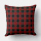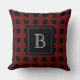 Rustic Monogram Red Black Buffalo Check Plaid Throw Pillow