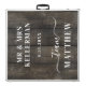 This custom wedding beer pong table features a faux rustic dark wood background with crisp white fonts, adding a warm and stylish touch to your wedding celebration. It proudly displays "Mr. & Mrs. [Last Name]" along with the bride and groom's names, so guests can join "Team [Bride's Name]" or "Team [Groom's Name]" for a fun and personalized game. The wedding date is also included, making it a great keepsake from your special day.