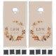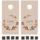 This elegant wedding cornhole set features hand-painted watercolor burnt orange and terracotta leaves, cream and beige dahlias, and beautiful rust-colored roses on a taupe background with the bride and groom's monogram and wedding date. Find matching items in the Taupe Autumn Romance Collection.
