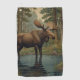 Loose yourself in the enchanting allure of this elegant bohemian moose artwork, where nature's grandeur meets timeless artistry. Set against a lush forest backdrop, this exquisite piece captures the serene beauty of a verdant woodland, rich with intricate details of flora and towering trees. The moose, standing majestically in a tranquil body of water, observes its surroundings amidst a tapestry of lush foliage, embodying the harmonious blend of botanical organic forms and nature's splendor. In the distance, the majestic mountains rise, completing the idyllic scene. Each element of the artwork, from the curling tendrils of the plants to the fine veining on the moose's antlers, is rendered with meticulous care, evoking a sense of nostalgia and wonder. This piece is a perfect homage to the elegance and intricacy of Art Nouveau design, offering a timeless window into a world where nature and art intertwine.