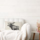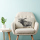 Detailed moose sketch on a faux canvas pattern on the front side of the pillow. The backside of the pillow features a black laurels wreath frame containing your choice of personalized monogram letter and family name in black text.