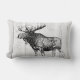 Rustic Moose Sketch and Laurels White Wood Planks Lumbar Pillow