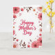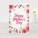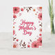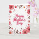 Designed with a bright white background, this card centers on the words “Happy Mother’s Day” in rose-pink lettering, placed prominently in the middle like a gentle note of affection ❤️. Around the text, a garden-like frame of flowers and foliage leans inward, as if offering a quiet hug from all sides. Large daisy-like blooms sit near the corners and along the edges, with layered petals shifting from pale blush to deeper coral tones. Some flowers have warm brown centers, while others show small ochre touches that add a soft, sunny contrast. Smaller star-shaped yellow flowers are tucked between the larger blossoms, creating the feeling of close companionship within the border 🌼. Deep reddish-brown leafy sprigs weave through the arrangement, grounding the lighter petals and guiding the eye back toward the central message. Tiny red berries and slender buds dot the frame, especially near the outer edges, giving the border extra texture against the white space.