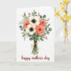 Designed with a softly painted bouquet set against a bright white background, this card centers on a cluster of open, creamy flowers with dark, button-like centers that draw the eye. Nestled among them are smaller, tightly curled blossoms in a coral-peach shade, adding a gentle, romantic warmth like a shared glance between close friends ❤️. Greenery surrounds the flowers with a mix of rounded coin-shaped leaves and slimmer pointed ones, giving the arrangement a relaxed, natural flow. Tiny sprigs of deep red berries peek through the leaves, creating little jewel-like accents that feel like thoughtful gestures. The stems gather neatly at the bottom and are tied with a rustic twine bow, suggesting care in the way the bouquet is presented. Beneath the bouquet, the message sits centered near the lower edge in flowing lettering colored a warm rust tone, leaving plenty of open space around it 🌼. The bouquet shows creamy petals, coral-peach spirals, green leaves, and crimson berries above the rust-colored text on a white field.