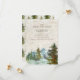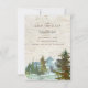 This rustic, mountain forest Christmas Holiday Save the Date invitation features a beautiful watercolor scene of a tree edged lake with snow-capped mountains behind, on a faux birch bark background. The back of the invitation features evergreen pine trees scattered over the birch bark, to complete the look. Copyright Elegant Invites, all rights reserved.