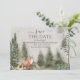 Introducing our Rustic Mountain Forest Photo Wedding Save The Date! Whether you’re having a woodland or mountain-themed wedding, this Save the Date will coordinate perfectly and make your special day even more special. This card features a stunning forest mountain scene with forest animals to give off a natural, rustic feel. You and your guests will absolutely love it!
