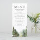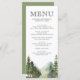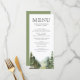 Elegant wedding menu featuring beautiful mountains and pine trees with modern typography.