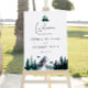 Rustic Mountain Forest Wedding Welcome Sign - Greet your guests with this beautiful wedding sign featuring a serene mountain forest design. Perfect for nature-inspired or outdoor weddings with a rustic and elegant touch.