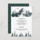 Elegant forest theme wedding enclosure card featuring beautiful mountains and pine trees on a white background.