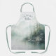 A simple nature-inspired kitchen apron with a watercolor mountain lake painted in soft hues of sage green, blue and gray. Personalize the text template with any name. It's makes a great gift for nature lovers and those with a lake house, mountain lodge, or like to camp.
