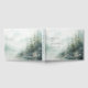 The front and back covers present a soft watercolor pine forest reflected in tranquil waters beneath a misty mountain backdrop. A text template on the front cover includes the bride and groom's names and wedding date. The spine text may be edited to your desired wording, or keep as shown. Colors include soft aqua, teal, green, blue and gray in various shades and watercolor washes. Make every guest feel welcomed into your unforgettable day surrounded by the peaceful beauty of nature.