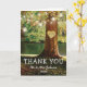 Rustic tree wedding thank you cards featuring a romantic woodland & lake setting with a red berry tree, carved love heart with your initials, string twinkle lights, and a thank you template.