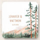 Rustic Mountain Landscape, Fog, Pine Trees Wedding Beverage Coaster