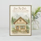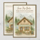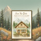 This wedding save the date invitation reflects the charm of a rustic mountain wedding, blending the warmth of a cozy chalet with the elegance of nature-inspired details. Surrounded by alpine views, pine trees, and outdoor seating, it creates a romantic destination atmosphere that feels both timeless and welcoming. The soft watercolor aesthetic highlights handcrafted beauty, making it ideal for couples who envision a celebration in the mountains, outdoors, or at a cozy rustic venue.