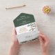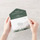 Rustic mountain landscape with forest grass, mountains, fog, and pine trees in shades of forest green and copper. The RSVP is perforated making it easy to tear off and send back. There is a QR code so guests can RSVP to a website. The postcard is the correct size for sending via USPS at the lower postage pricing, and the back flap that overlays the postcard is large enough to cover the return address and stamp sections to avoid confusion with mailing. Personalize with your own information. If you need help with this invitation or for custom requests you need my help with, do not place this merchandise in your cart. Instead, email me your request at shutterbug600@yahoo.com. Please Note: I can only help with the design - all shipping and printing is handled by Zazzle and questions concerning your order should be directed to Zazzle support: SUPPORT: https://help.zazzle.com/hc/en-us/articles/221463567-How-Do-I-Contact-Zazzle-Customer-Support-. I do not have access to your account and can't make changes once you've placed your order. Also, CHAT is not live, but I typically answer within 24 hours.