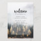 Rustic Mountain Pine Trees Fall Forest Design with soft fading photography image. A rustic outdoor landscape scene for an adventurous lodge, mountain, retreat wedding, in dark green, grays, gold and white. - Wedding Ceremony Program!