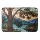 Rustic mountain range landscape stain glass bath mat