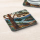 Rustic mountain range landscape stain glass beverage coaster