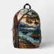 Rustic mountain range landscape stain glass printed backpack