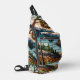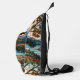 Rustic mountain range landscape stain glass sling bag