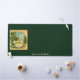 A vintage rustic image; a circular vignette featuring mountains and conifer trees with snow in the branches surrounded by a floral motif. Customize by adding your own text.