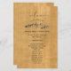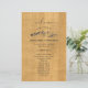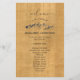 Beautiful MOUNTAIN WEDDING program paper sheet design featuring a sketched mountain motif and a big "welcome" in an elegant script as well as the wedding program details on a rustic wood-textured background for you to personalize.