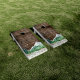 Natural Wood Cornhole Set, Hunter Green and Grey bags