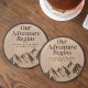 They are the perfect memento for your guests to take home and remember the beautiful memories of your special day. And with the phrase "our adventure begins" printed on each coaster, your guests will be reminded of the incredible mountain nature scene that served as the backdrop for your special day.