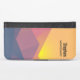 Personalized phone wallet case with a graphic illustration featuring many mountain tops with bright yellow sunlight setting behind the mountains. Made with geometric polygonal shapes.Simple minimalist design. Colors range from dark blue to desert red.