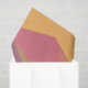 Tissue paper with a graphic illustration featuring many mountain tops with bright yellow sunlight setting behind the mountains. Made with geometric polygonal shapes.Simple minimalist design. Colors range from dark blue to desert red.