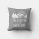 Rustic Mountains Quote Life is Better Gray White Throw Pillow