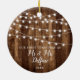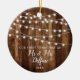 Rustic Mr and Mrs Personalized Wood String Lights Ceramic Ornament. Personalize with your custom information on both front and back.