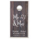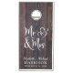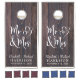 A fun cornhole game set for your wedding party events and newlywed life. This rustic design features a faux dark wood background with "Mr & Mrs" written in a large white script and a white illustration of two hearts joined together. Personalize with your first names, last name and wedding date, and select your bean bag colors.